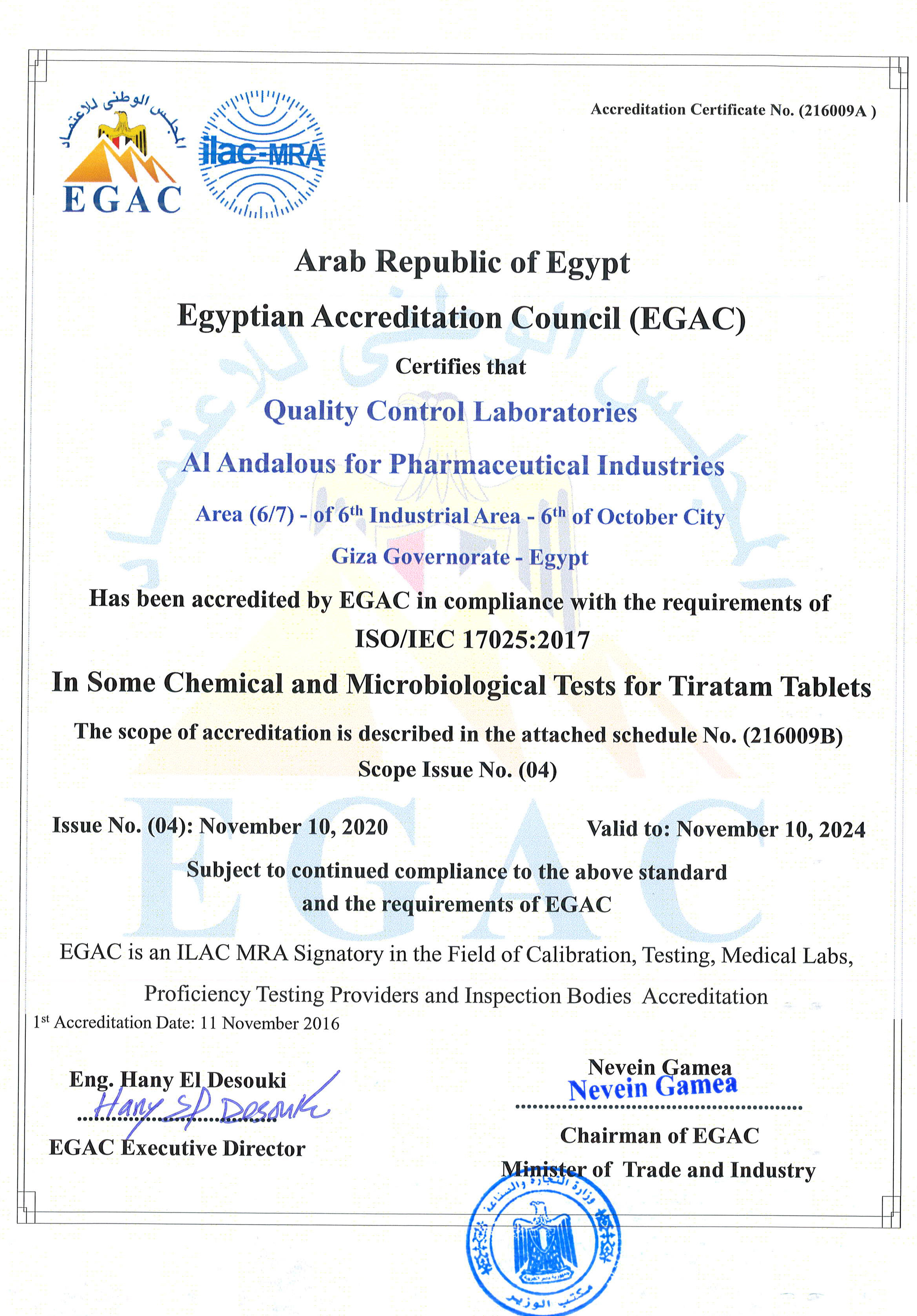Al Andalous plant is an EU-GMP certified facility was founded 2007 to develop & produce wide range of the branded generic pharmaceutical products. Plant was built on 6000 m2 in Industrial zone of 6th of October city with 8000 m2 future extension opportunity, gathering 390 highly experienced, qualified and well trained employees. At Al Andalous plant, we recognize our responsibility to continuously build and create competitive, resilient and innovative culture, allowing us to successfully navigate in a competitive and constantly changing environment. We rely on being able to attract, develop and retain highly skilled calibers, who work effectively together. We are doing this by fostering a climate of entrepreneurship and offering our employees an atmosphere of responsibility, accountability and respect where every employee has the opportunity to excel and develop his/her full potential. At Al Andalous plant, all manufacturing operations are carried out in full compliance with global quality and environment, health and safety standards and guidelines. Our motto “No compromise on quality at any cost” has never changed since our foundation. At Al Andalous plant, we established strong, comprehensively designed and strictly implemented QMS to assure that our products manufacturing complies with c GMP, the requirements of its market authorizations and don’t place our patient at risk due to inadequate safety or quality attributes. At Al Andalous plant, we apply set of validate system that control & monitor our operating activities and assure effective management of all business modules and activities i.e. SAP-ERP system, QMS, DMS, LIMS, BMS, WMS, MRP, Lean manufacturing approach, … Al Andalous plant is certified by series of accreditations i.e. EU-GPM, ISO 9001, 45001, 17025, 22301, 14001, .. At Al Andalous, we have highly qualified R&D center which is committed to developing innovative medicines and products inspired by needs of patients and health care professionals. Focusing on these needs, we identified areas for advancement in formulation, delivery and tolerability for some of the most and widely used medications.